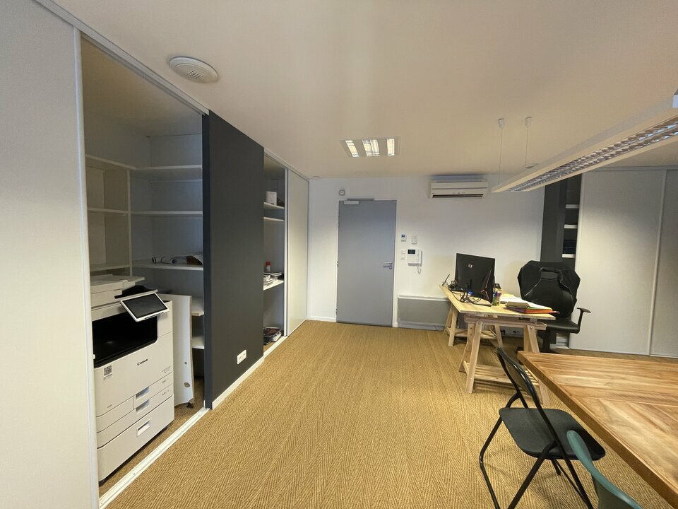 Les locaux comprennent un grand espace de bureaux, un coin cuisine, des sanitaires ainsi qu’un placard de rangement.
