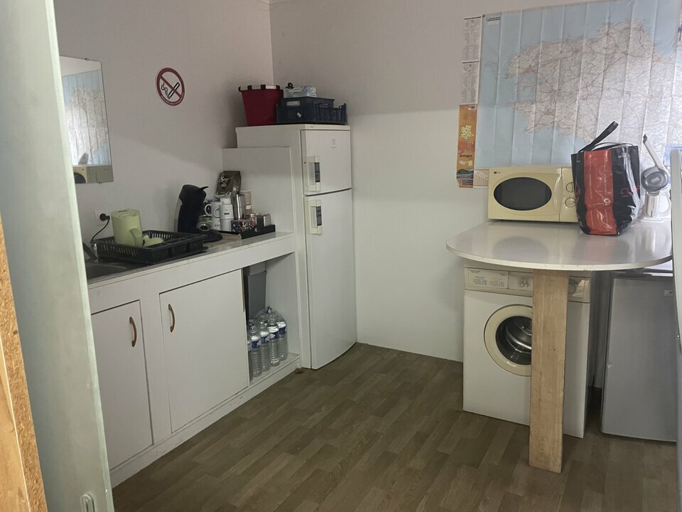 – dalle béton – triphasé disponible- bureau et espace repas – sanitaire ; douche et wc – accès poids lourds – espace de stockage en mezzanine