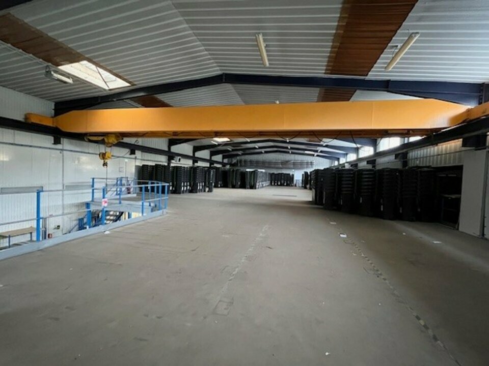 - Surface totale : env. 2 100 m² (entrepôt, bureaux, mezzanine)