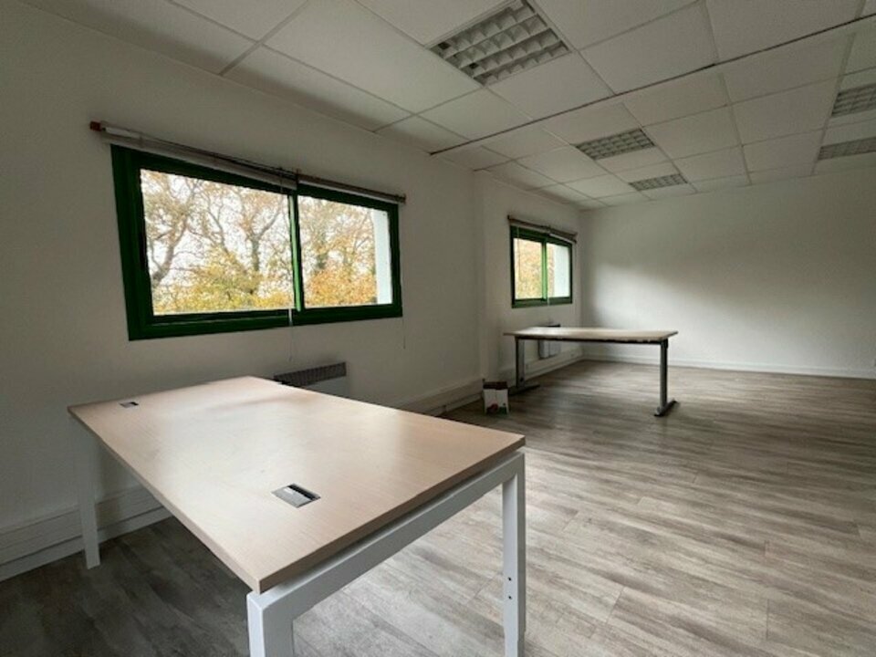 Situé au sein d’un ensemble immobilier professionnel, ce bâtiment indépendant en bardage et charpente métallique propose un espace mixte combinant stockage et bureaux. En rez-de-chaussée, il dispose d’un entrepôt principal de 800 m², complété par 200 m² de bureaux et locaux sociaux ainsi qu’un local de stockage de 200 m². À l’étage, une mezzanine de 745 m² dédiée au stockage et 155 m² de bureaux complètent l’ensemble.