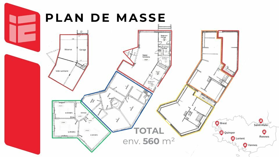 - 57 m², comprenant 3 cabinets et 1 salle d’attente